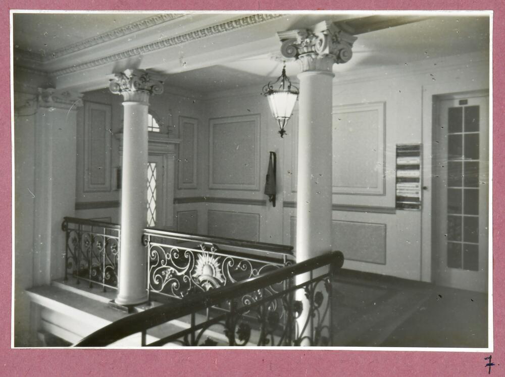 Latvijas PSR Augstākās padomes ēkas Komjaunatnes ielā 11 kāpņu telpa (tagad - Latvijas Republikas Saeimas ēka, Jēkaba ielā 11). Augusta Roberta Pflūga un pirmā akadēmiski izglītotā latviešu arhitekta Jāņa Fridriha Baumaņa projekts. Lielo marmora kāpņu telpa.