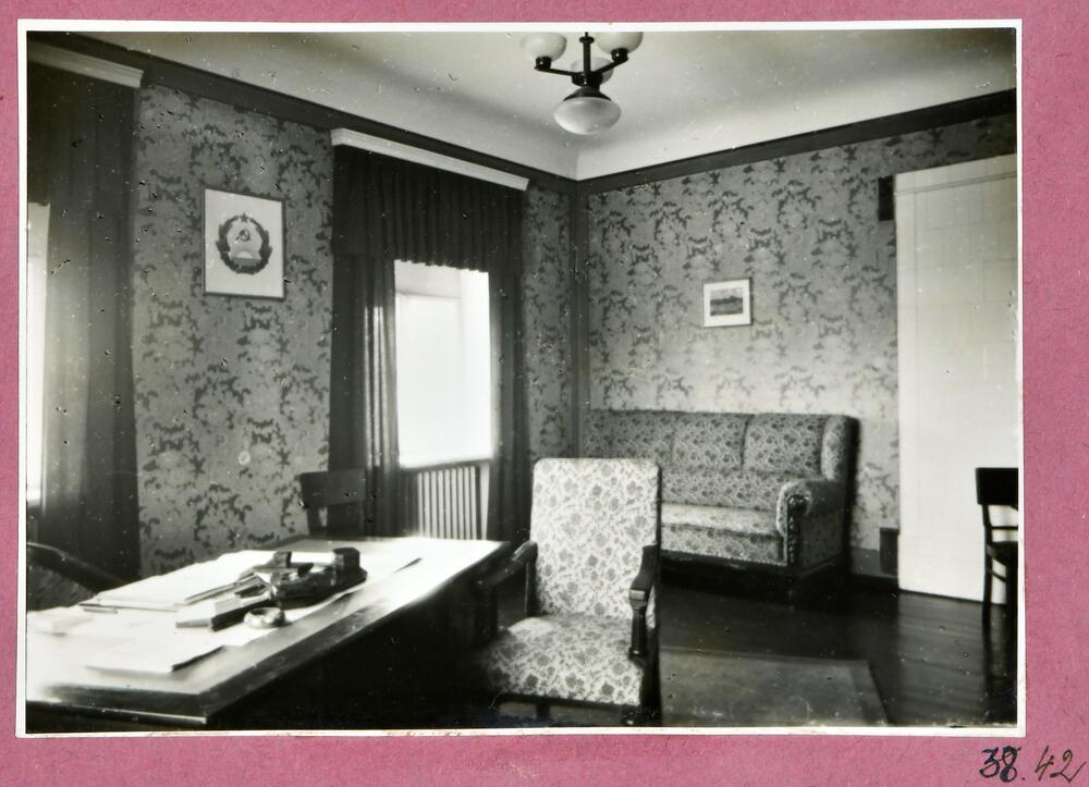Latvijas PSR Augstākās padomes ēkas Komjaunatnes ielā 11 (tagad - Latvijas Republikas Saeimas ēka, Jēkaba ielā 11) apbalvojumu daļas kabinets. Augusta Roberta Pflūga un pirmā akadēmiski izglītotā latviešu arhitekta Jāņa Fridriha Baumaņa projekts.