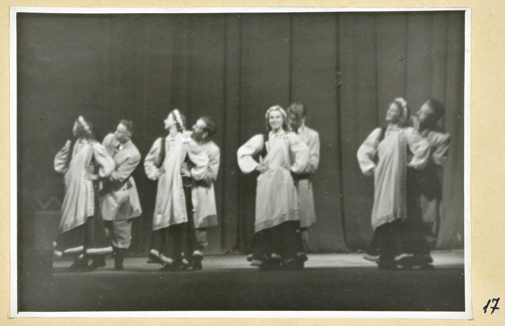 Deju kolektīva priekšnesums noslēguma koncertā Latvijas PSR Valsts operas un baleta teātrī (tagad Latvijas Nacionālā Opera un Balets).
