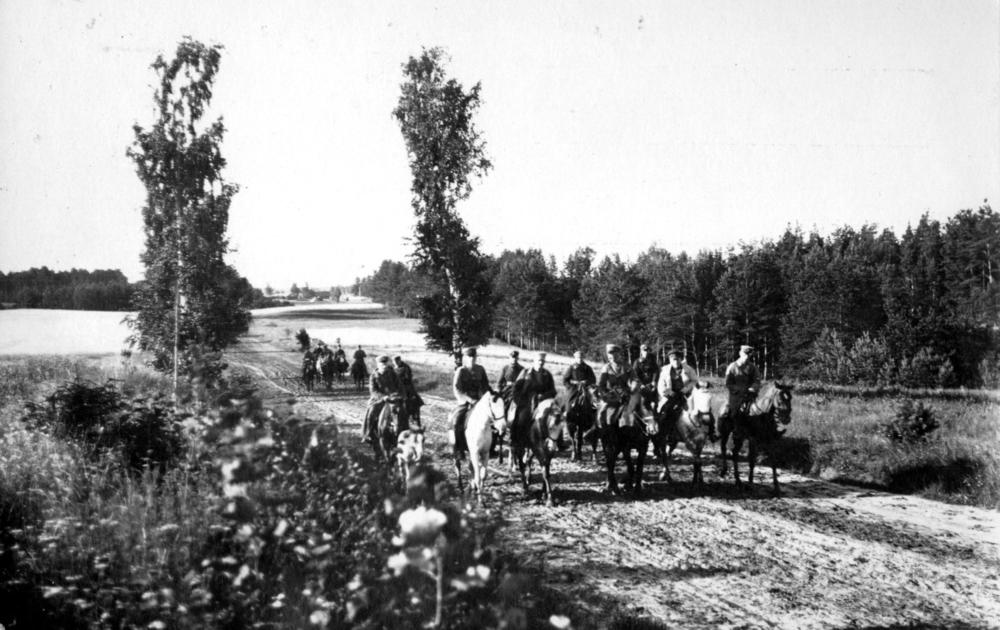 Latvijas armijas Smagās artilērijas pulka kavalēristi dodas mācībās.