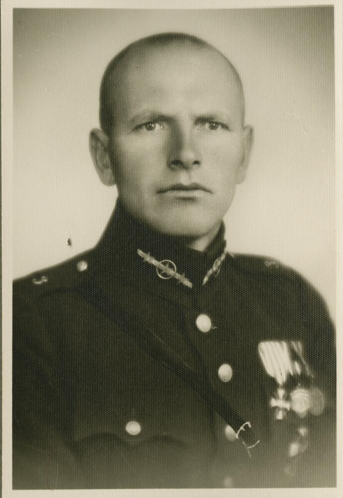 Latvijas armijas 3. Jelgavas kājnieku pulka kapteiņleitnants Kārlis Teodors Antons. Militārajā dienestā sasniedzis kapteiņa pakāpi. Lāčplēša kara ordeņa kavalieris. Portrets.