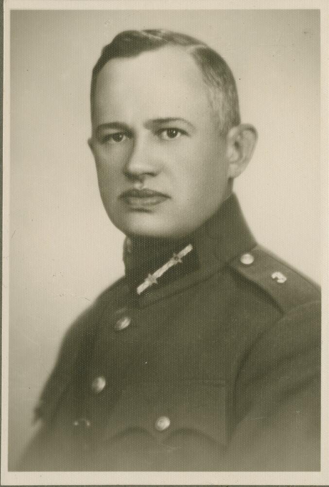 Latvijas armijas 3. Jelgavas kājnieku pulka virsleitnants Arvīds Stirna. Militārās karjeras laikā sasniedzis kapteiņa dienesta pakāpi. Viestura ordeņa kavalieris. Portrets.