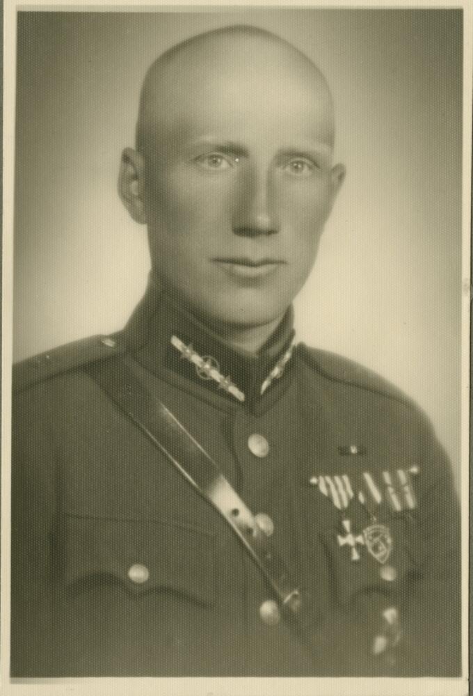 Latvijas armijas 3.Jelgavas kājnieku pulka kapteiņleitnants Leo Bergmanis. Militārās karjeras laikā sasniedzis kapteiņa dienesta pakāpi. Lāčplēša kara ordeņa kavalieris. Portrets.