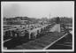 Tilta celtniecība pār Mēmeli. Fonā redzama Bauskas pilsētas ainava.