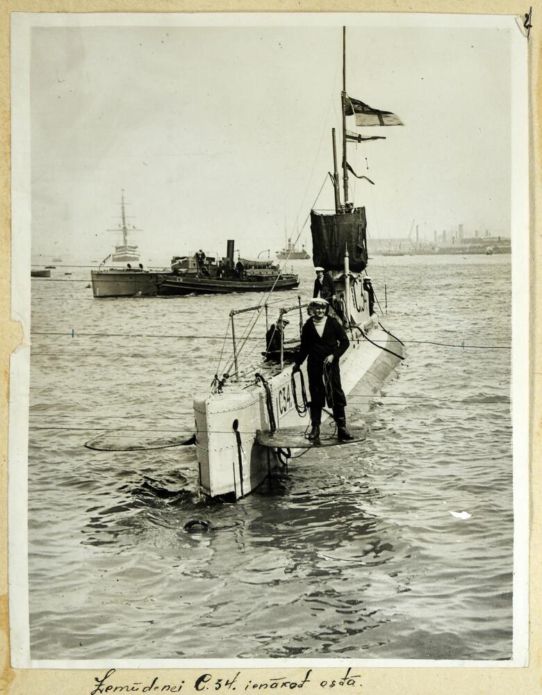 Lielbritānijas Karaliskās flotes vienības zemūdene HMS C34 ienāk ostā.