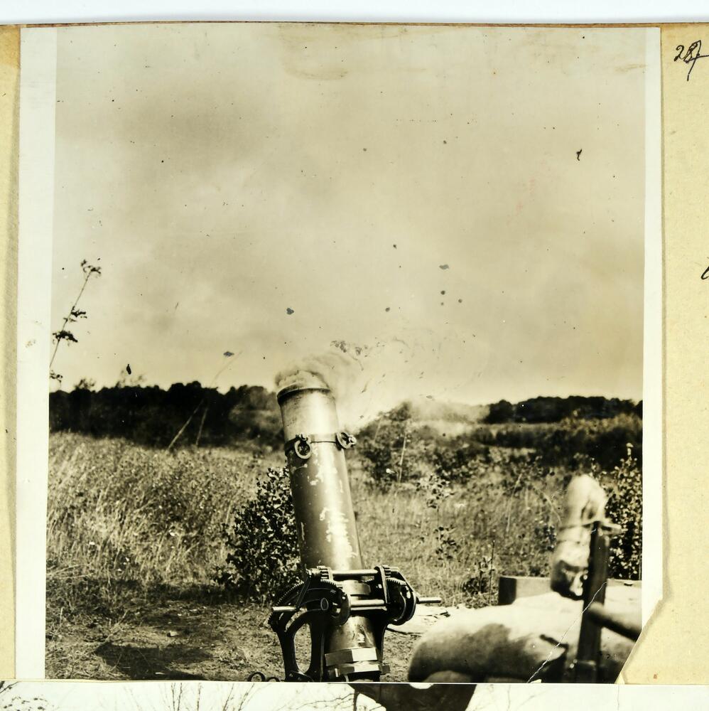 Uguns atklāšana no lielā mīnmetēja Pirmā pasaules kara laikā.