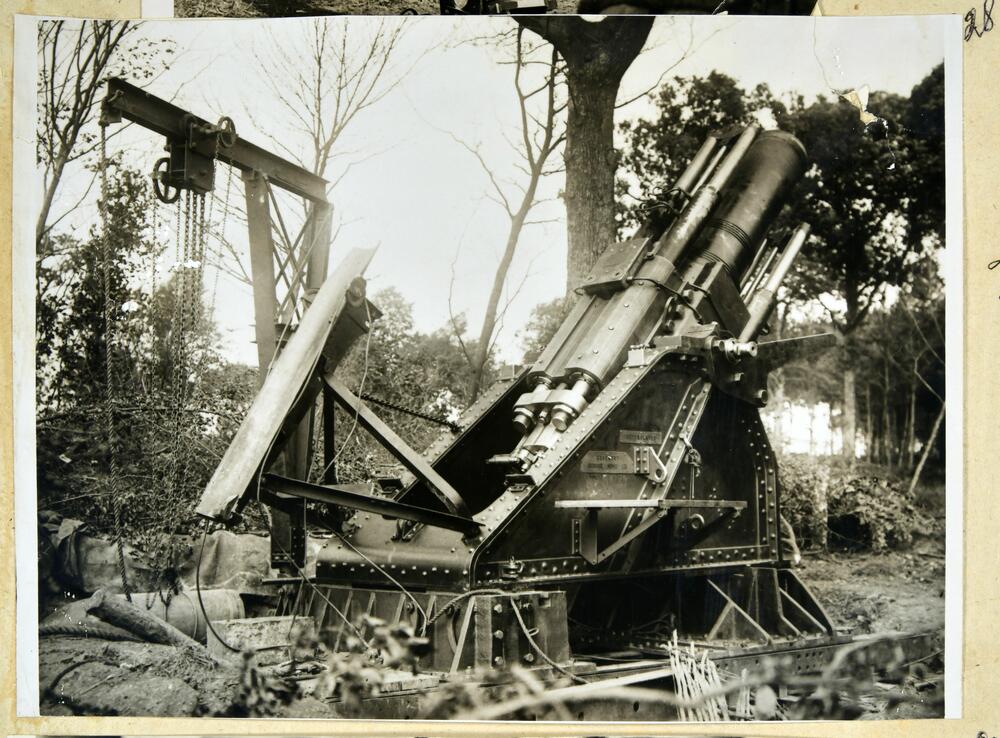 Lielā haubice uz pārvietojamās platformas Pirmā pasaules kara laikā.