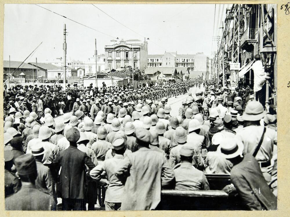 Itāļu karavīrus iedzīvotāji sveic ienākot Salonikos Pirmā pasaules kara laikā.