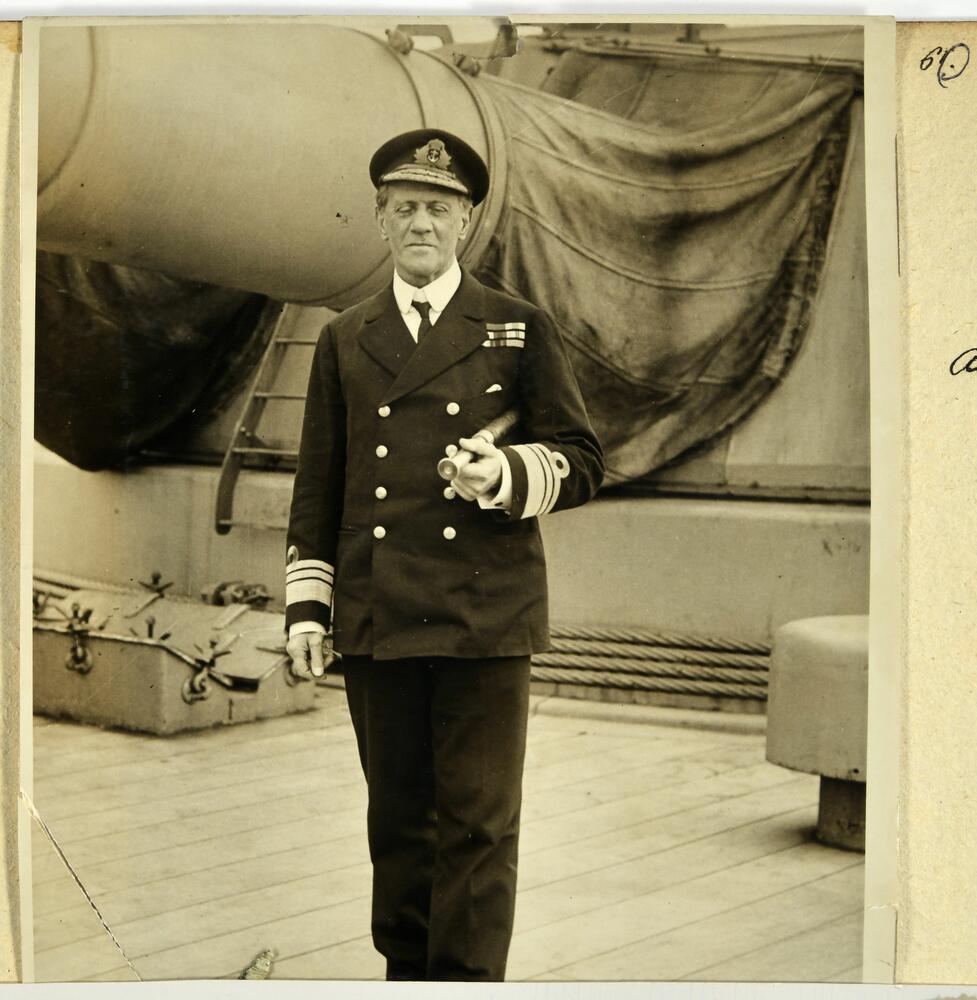 Karaliskās flotes viceadmirālis sers Sesils Bērnijs (Cecil Burney) uz kara kuģa klāja.