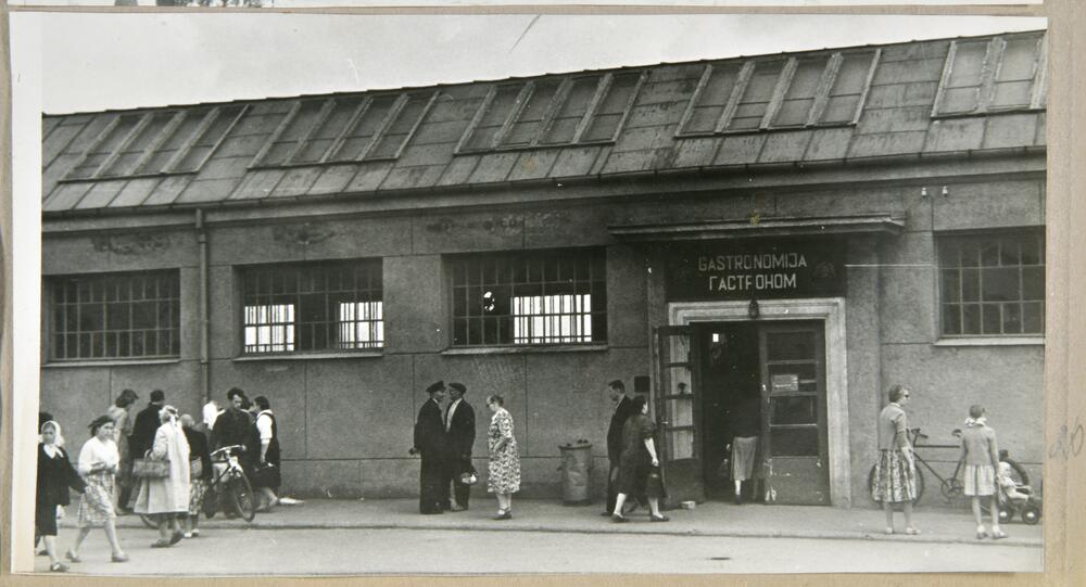 Jelgavas kolhozu tirgus gastronomijas paviljons.