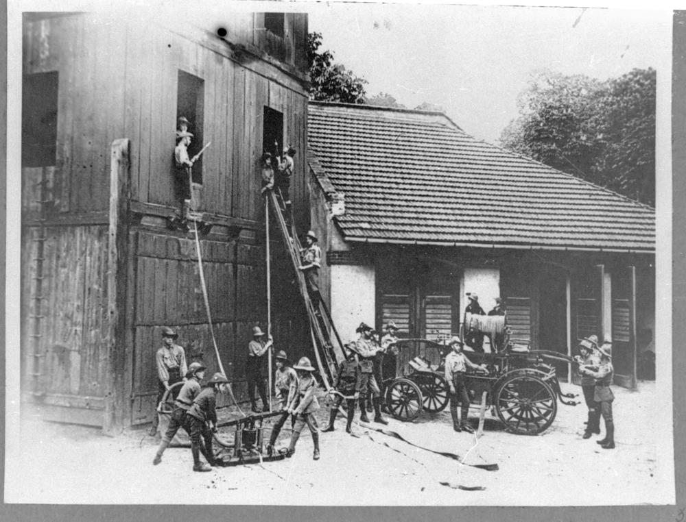 Starptautiskā skautu nometne Buļļos ietvaros notikušās sacensības ugunsdzēšanā.