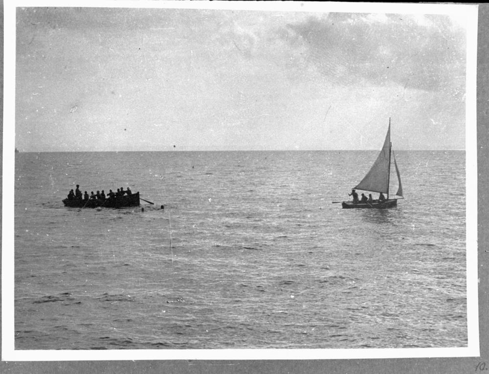 Starptautiskā skautu nometnes dalībnieku brauciens laivās pa Lielupi.