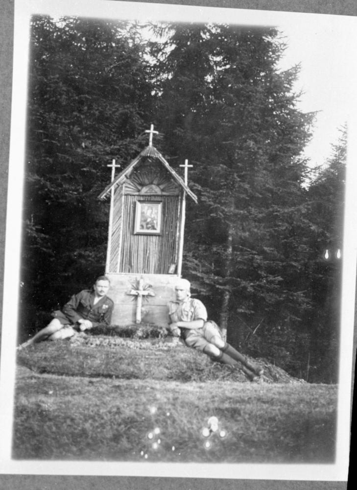 Polijas skauti pie altāra ar Dievmātes gleznu Starptautiskā skautu nometnē Buļļos.