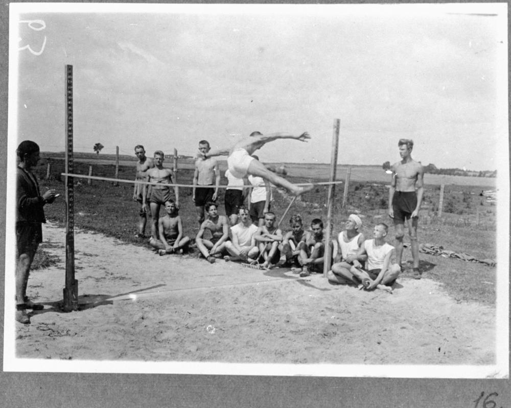 Polijas skauti augstlēkšanas sacensību laikā skautu nometnē Buļļos.