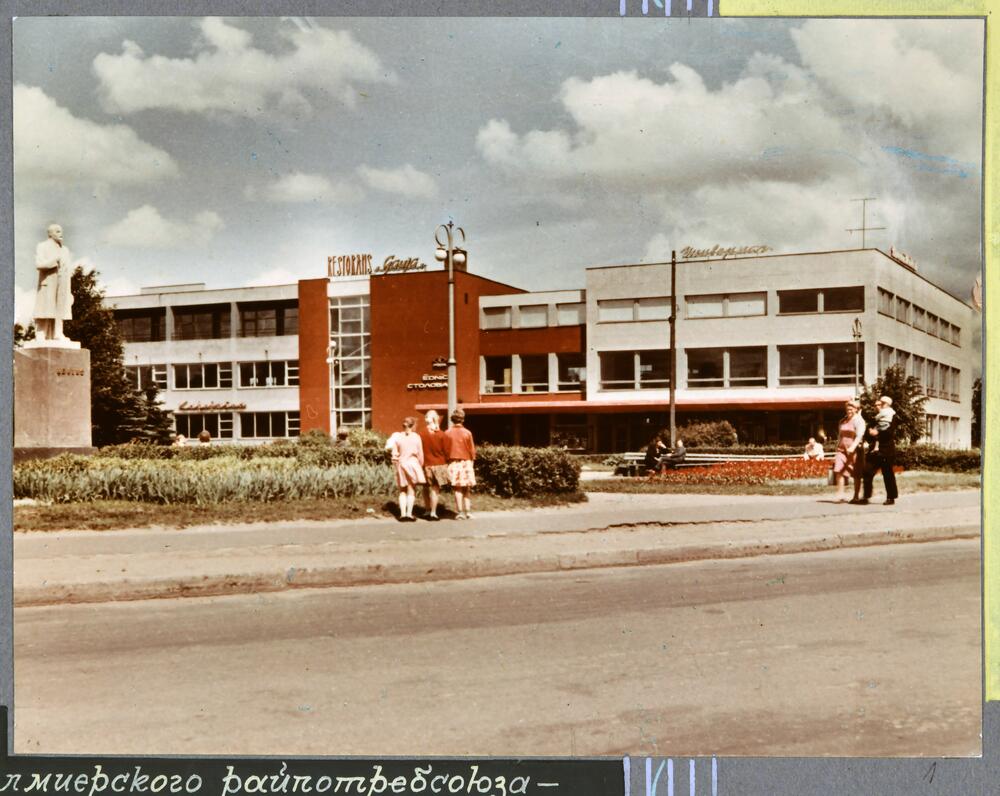 Skats uz Ļeņina pieminekli un Latvijas PSR patērētāju biedrību savienības Valmieras rajona patērētāju biedrības Valmieras tirdzniecības centru. 1965. gada martā atklātajā Valmieras tirdzniecības centrā atradās universālveikals, restorāns "Gauja", ēdnīca un kulinārijas veikals.
