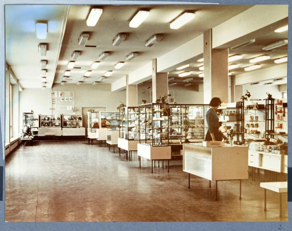 Latvijas PSR patērētāju biedrību savienības Valmieras rajona patērētāju biedrības Valmieras tirdzniecības centra universālveikala tirdzniecības zāle.