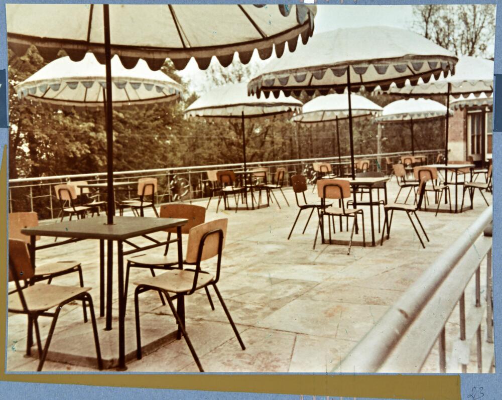 Bauskas rajona patērētāju biedrību savienības restorāna "Pilskalns" āra terase.