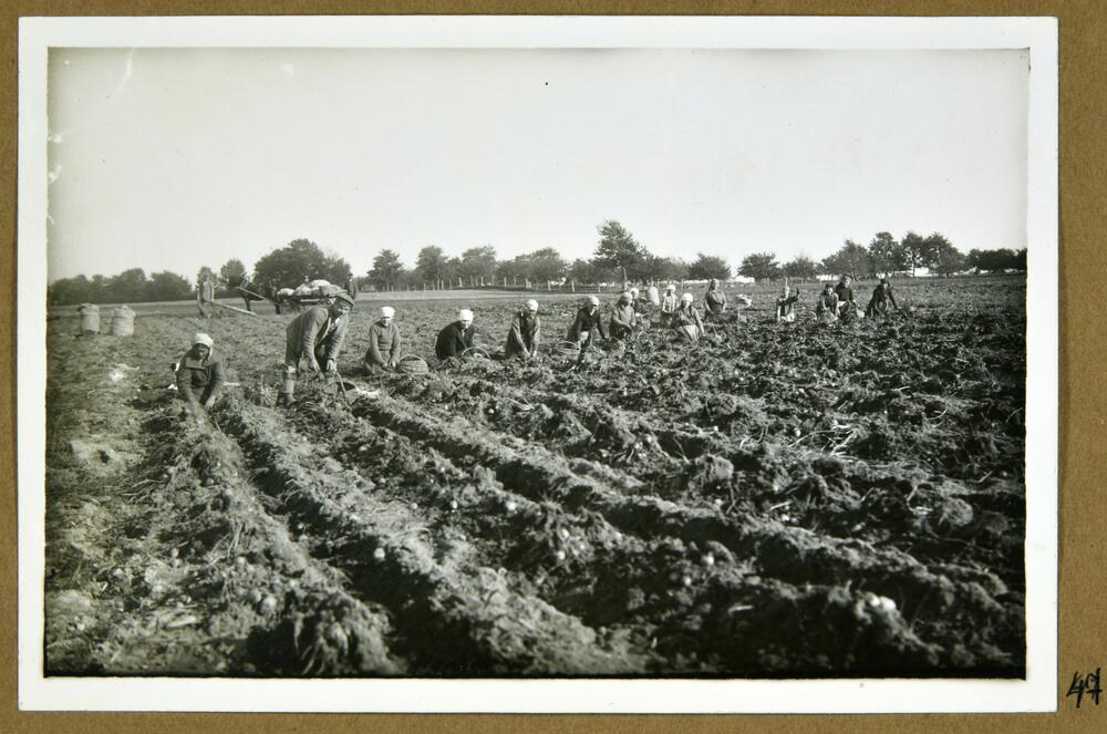 Skats uz kartupeļu novākšanu Latvijas Sarkanā Krusta Cēsu sanatorijas kartupeļu laukā.