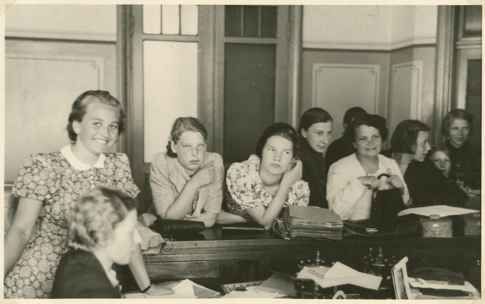 "Skolniekus reģistrē un tiem izsniedz Valsts prezidenta kunga dāvinātos virsvalkus". Skolnieču reģistrācija darbam.