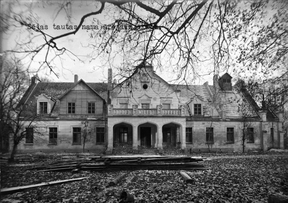 Sējas tautas nama ārskats. Tautas nams ierīkots Sējas muižas kungu mājā.