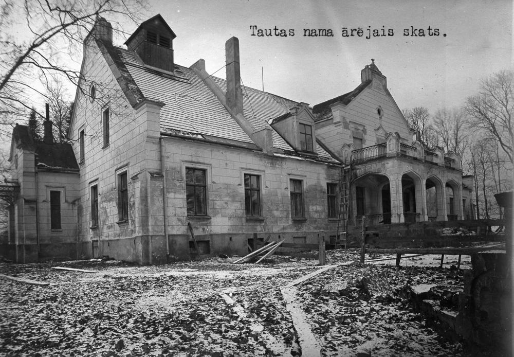 Sējas tautas nams remontdarbu laikā. Tautas nams ierīkots Sējas muižas kungu mājā.