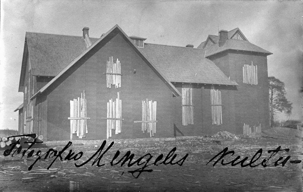 Meņģeles kultūras biedrības nama ārskats celtniecības laikā.
