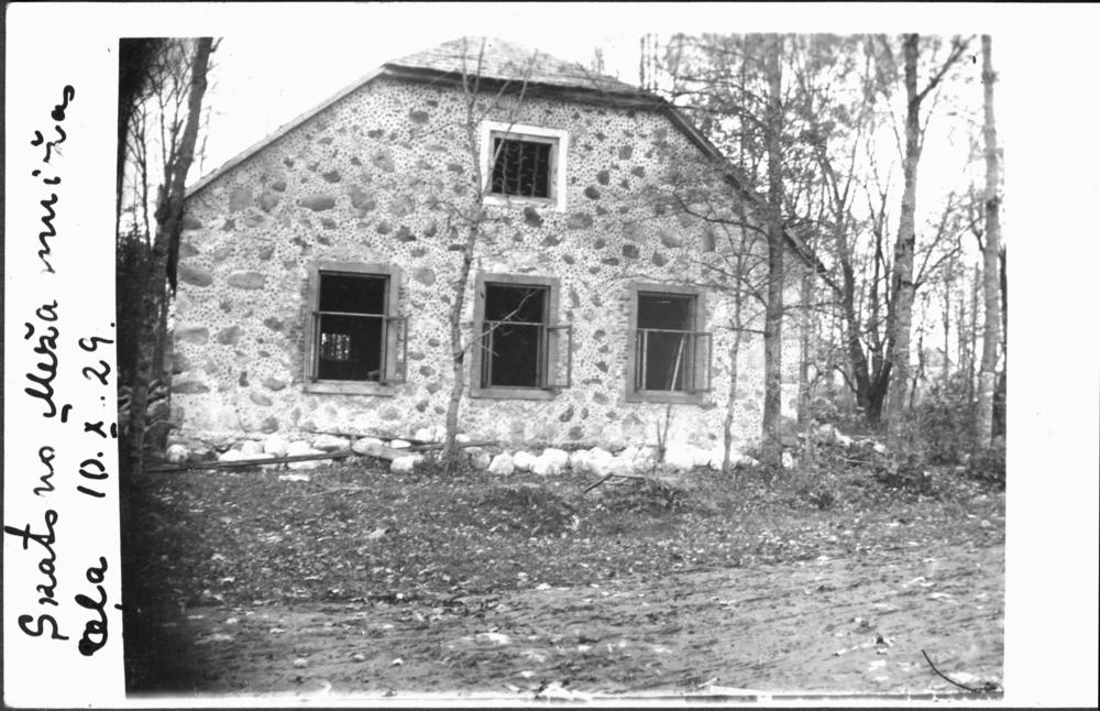 Meirānu tautas nama ēka pārbūves darbu laikā. Skats no Meža muižas ceļa.