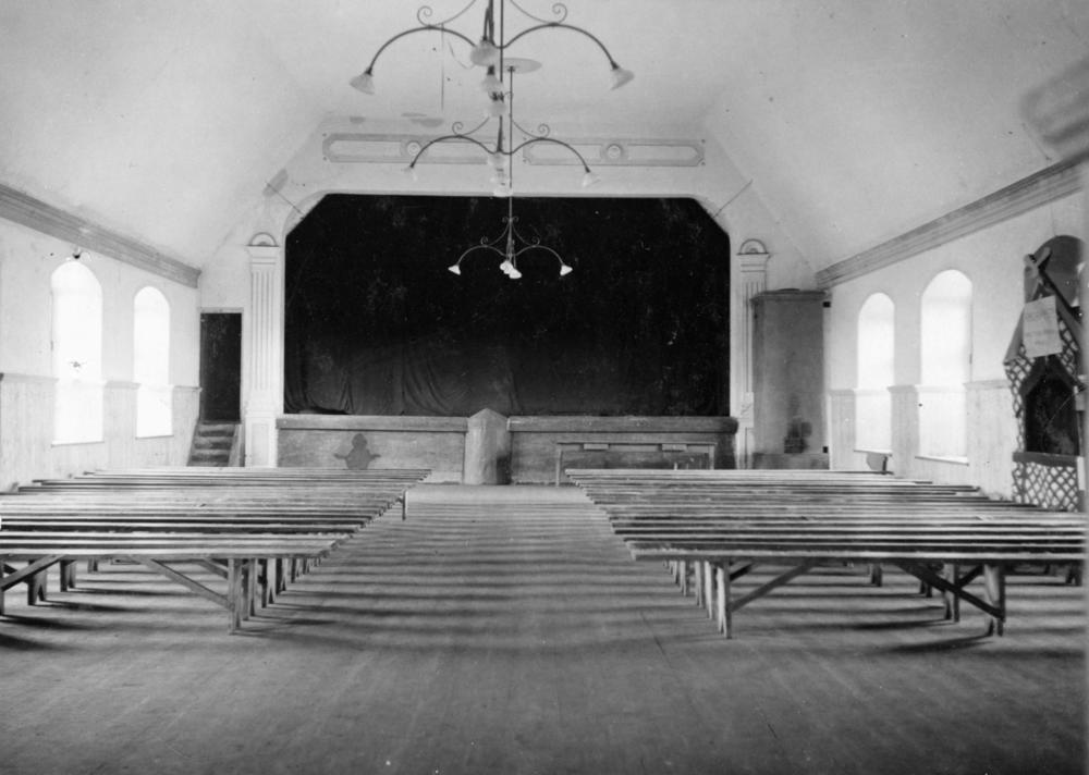 Ezeres tautas nama iekšskats - zāle un skatuve (tagad Ezeres kultūras nams).