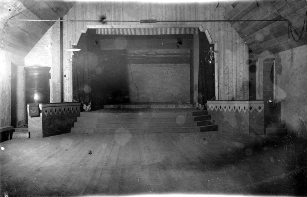 Ungurmuižas lauksaimniecības biedrības „Rūķis" nama iekšskats - zāle un skatuve.