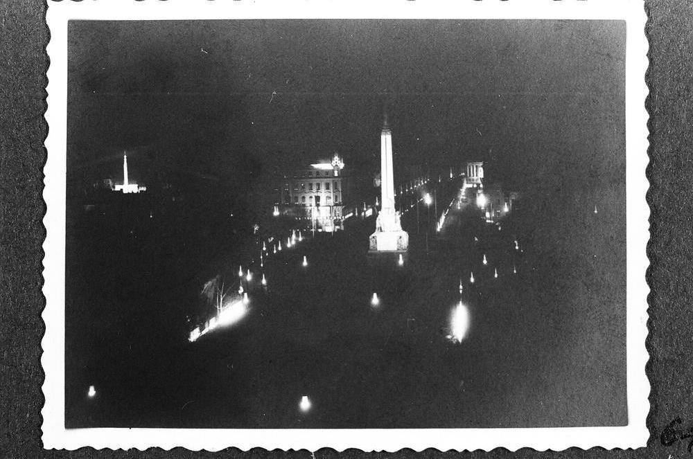 Izgaismotā Brīvības iela un Brīvības piemineklis Latvijas Republikas proklamēšanas 20. gadadienas svinību laikā.
