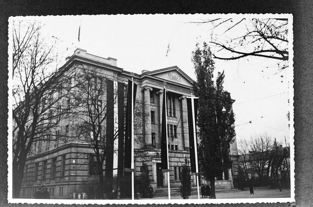 Izdekorētā Latvijas Republikas Ārlietu ministrijas ēka Krišjāņa Valdemāra ielā 3, par godu Latvijas Republikas proklamēšanas 20. gadadienas svinībām.