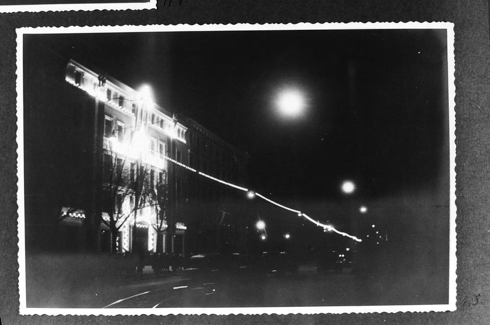 Izgaismotās ēkas un iela par godu Latvijas Republikas proklamēšanas 20. gadadienas svinībām.