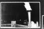 Degoša lāpa virs Latvijas Universitātes ēkas jumta par godu Latvijas Republikas proklamēšanas 20. gadadienas svinībām. Skats uz izgaismoto Latvijas Pasta Galvenās pārvaldes ēku (tagad Latvijas Universitātes Ekonomikas un vadības fakultāte) Aspazijas bulvārī 5.