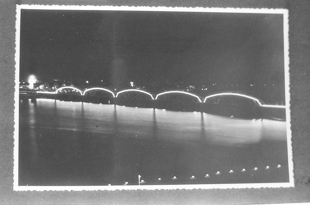 Izgaismotais Dzelzceļa tilts par godu Latvijas Republikas proklamēšanas 20. gadadienas svinībām.