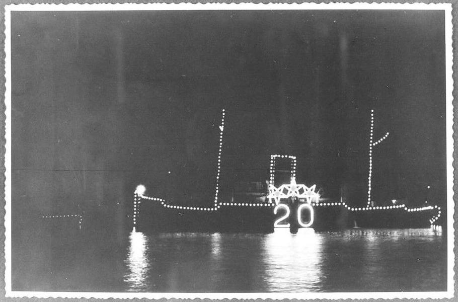 Latvijas jūras kara flotes (arī Jūras krasta apsardzes eskadra) iluminētais kuģis par godu Latvijas Republikas proklamēšanas 20. gadadienas svinībām.