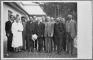 Rīgas centrālās slimo kases pārstāvji (?) un Rīgas trūcīgo bērnu atpūtas nama "Mālkalne" personāls (?) bērnu sanatorijas teritorijā. 1. rindā no kreisās: sanatorijas vadītāja (1927-1944), ārste Emma Rumbēns (dzimusi Ozoliņa). Grupas foto.