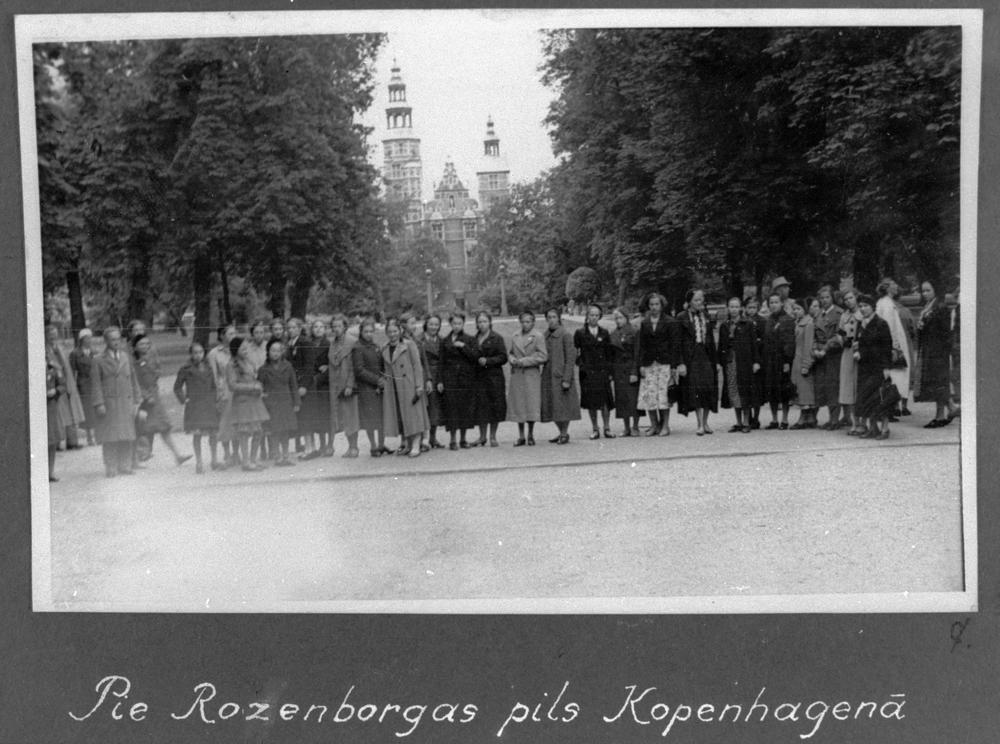 Latvijas Jaunatnes Sarkanā Krusta kora dalībnieki pie Rozenborgas pils parkā Dānijas galvaspilsētā Kopenhāgenā.