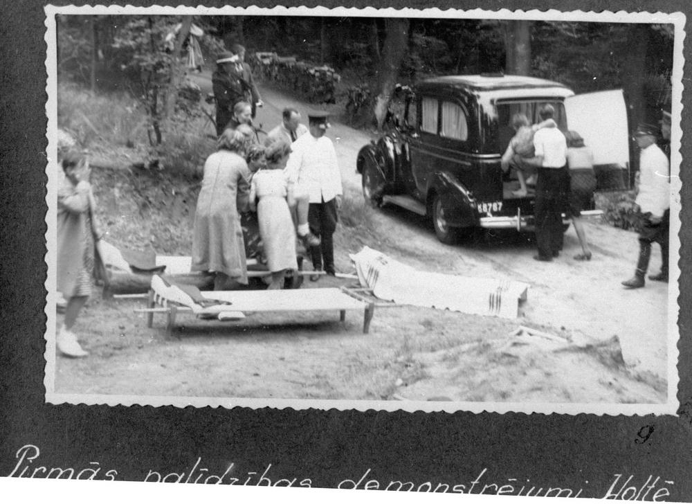 Latvijas Jaunatnes Sarkanā Krusta kora dalībnieki pirmās palīdzības demonstrējumos lauka apstākļos Dānijas pilsētā Holtē.