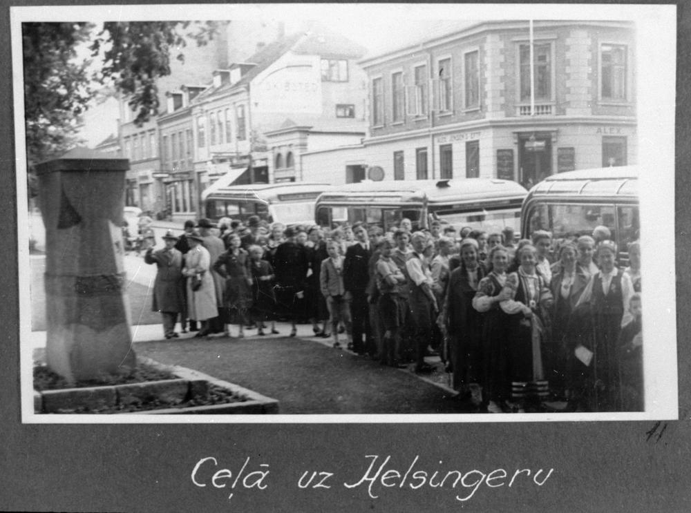 Latvijas Jaunatnes Sarkanā Krusta kora dalībnieki ceļā uz Helsingoru (Helsingēra) Dānijas Zēlandes salā.