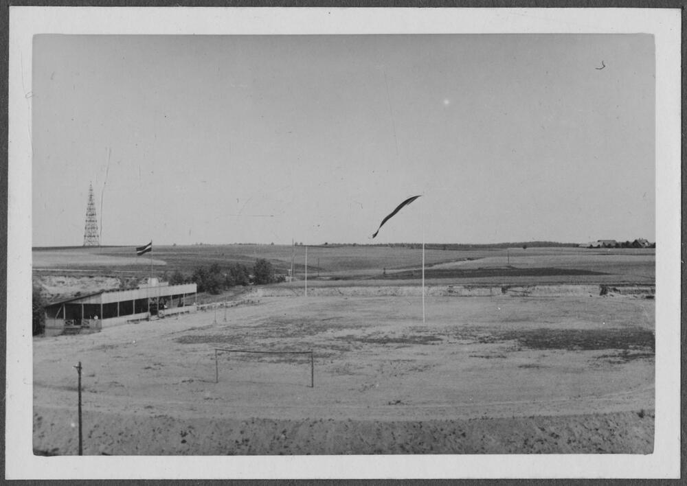 Aizsargu organizācijas sporta laukums, kurā var spēlēt futbolu un nodarboties ar vieglatlētikas disciplīnām. Kreisajā pusē redzams Latvijas valsts karogs.