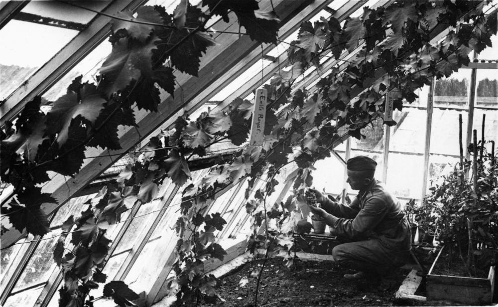 Vīnogulāji Latvijas Republikas robežapsardzes posteņa siltumnīcā.