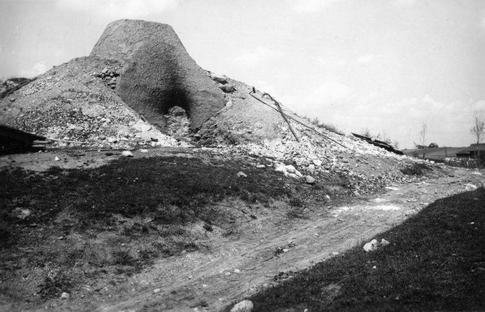 Latvijas Republikas pierobežā skats uz robežsargu novietnes kaļķu cepli.