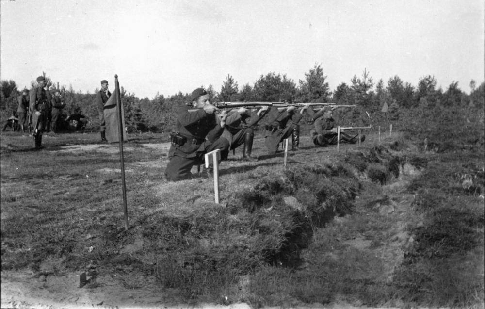 Robežsargi šaušanas apmācību laikā Latvijas Republikas pierobežā.