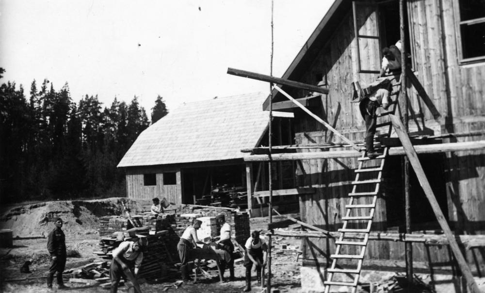 Latvijas Republikas pierobežā robežsargi pie ēkas jaunbūves celtniecības darbu laikā.
