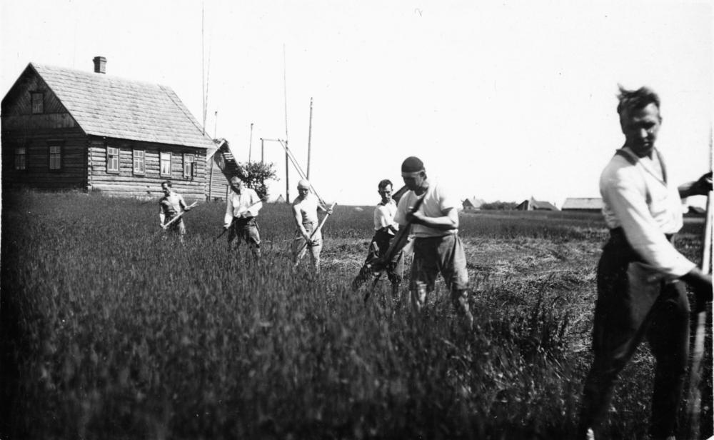Latvijas Republikas pierobežā robežsargi pļaušanas darbos.