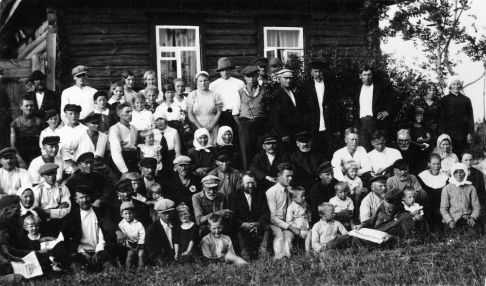 Latvijas Republikas robežsargi lasa avīzes pierobežas joslas iedzīvotājiem. Grupas foto.