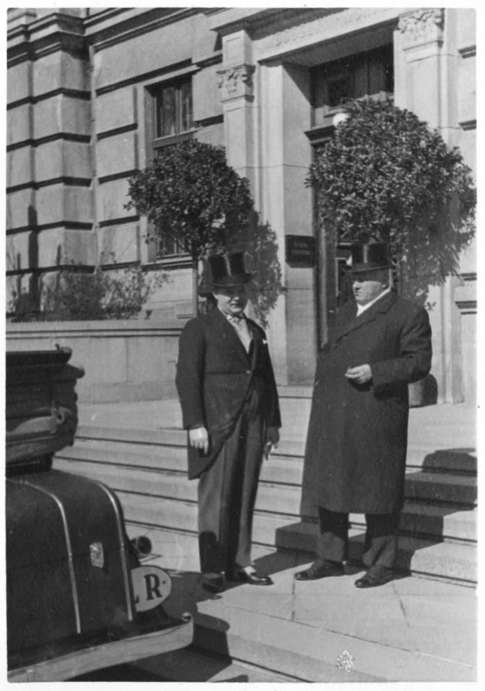 Kara ministrs, ģenerālis Jānis Balodis (pa labi) svētku dienā pie Valdības nama durvīm Krišjāņa Valdemāra ielā 3.
