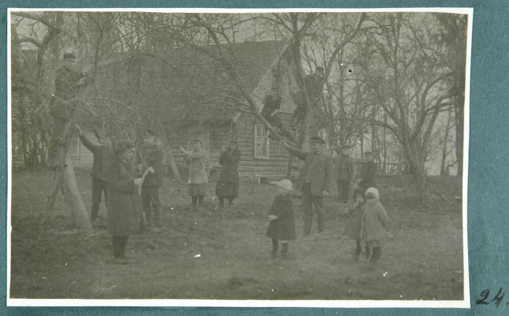 Domopoles (Bērzpils) divgadīgās lauksaimniecības skolas audzēkņi praktiskajās nodarbībās apkopj skolas augļudārzu.