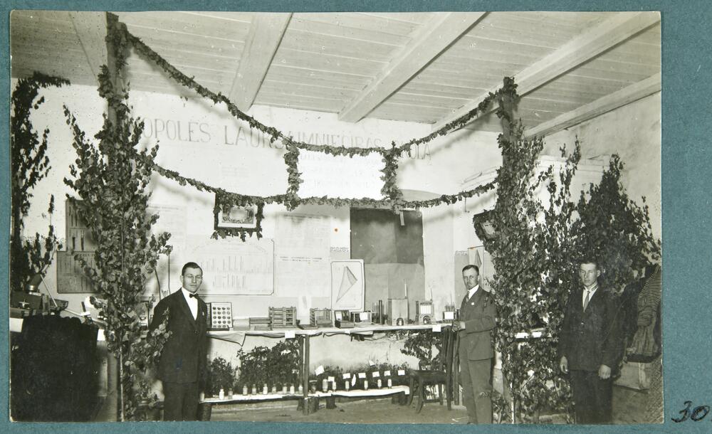 Domopoles (Bērzpils) divgadīgās lauksaimniecības skolas audzēkņu ražojumu stends izstādē Balvos.