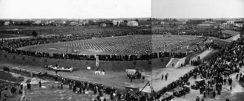 Rīgas pilsētas stadiona (tagad Daugavas stadions) kopplāns sporta svētku norises laikā.